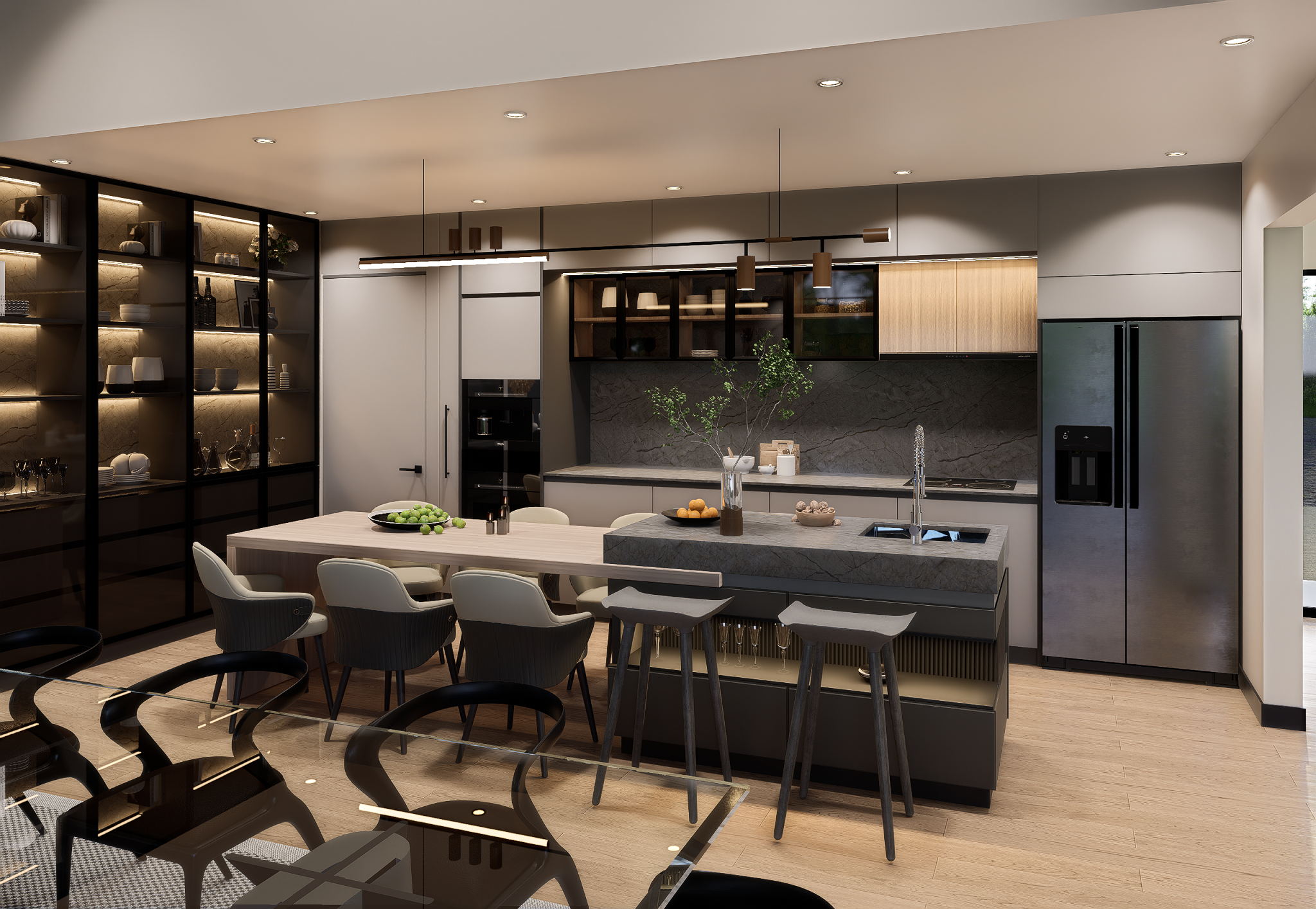 Desde aquí, una terraza se proyecta hacia el paisaje e incorpora un área de asados pensada para el encuentro familiar y social. En el nivel -1, la casa cuenta con un gimnasio y una bodega, conectados directamente con el patio donde una piscina infinita se convierte en protagonista, extendiéndose sobre la pendiente y fundiéndose con el horizonte. Un proyecto que une diseño, funcionalidad y paisaje, pensado para disfrutar cada rincón con la mejor vista.